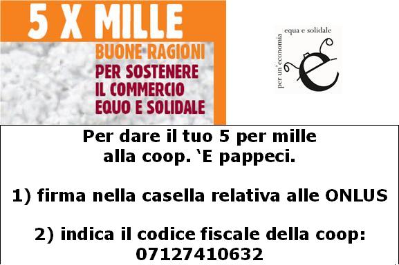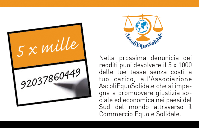 | Oggi puoi sostenere il Commercio Equo e Solidale nella tua città con un gesto che non ti costa nulla: il tuo 5x1000. | ||||||||||||