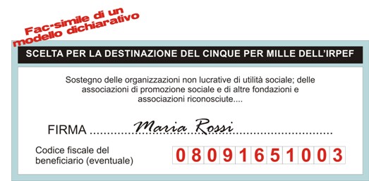| Nella dichiarazione dei redditi ti basterà indicare il Codice Fiscale dell'Organizzazione e firmare (c'è un'apposita casella). | ||||||||||||